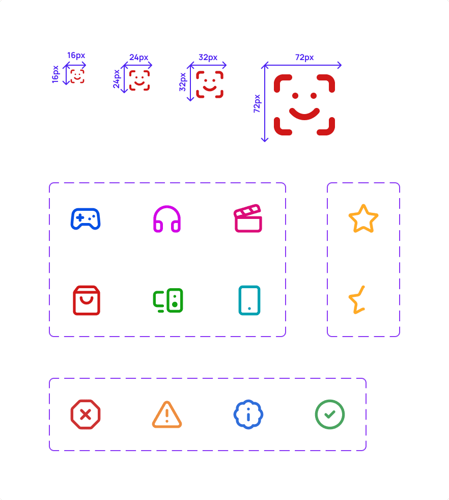 Simple, recognisable icons to aid navigation and reinforce meaning without visual noise.