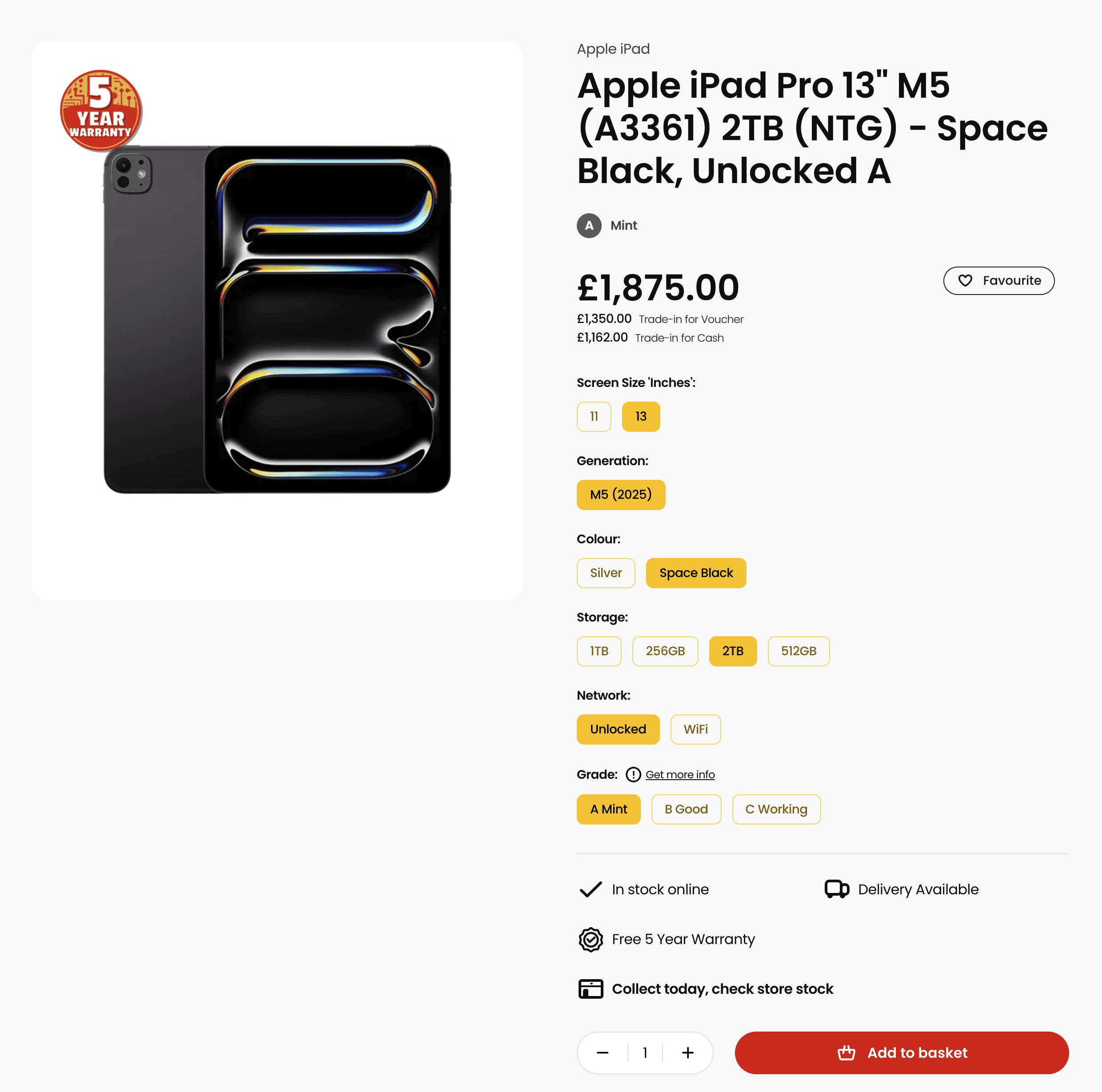This page carries the highest decision load in the CeX experience. It combines product information, condition grading, pricing, trust signals, and actions in a single view. While all the necessary information is present, the lack of clear hierarchy and grouping makes it harder than necessary for users to confidently understand what they’re buying and move forward.
