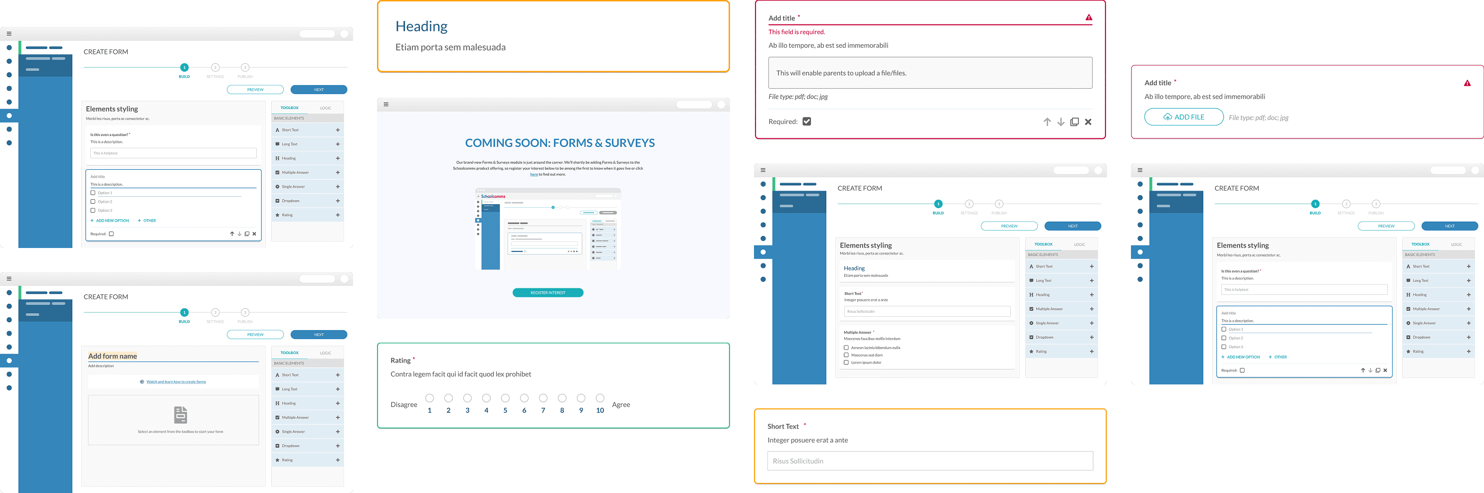 Following insights from the See โ Do workshop, I translated user flows and low-fidelity wireframes into high-fidelity prototypes, integrating all essential components into our existing Figma Library. This interactive form builder empowers schools to create, customise, and manage surveys efficiently.